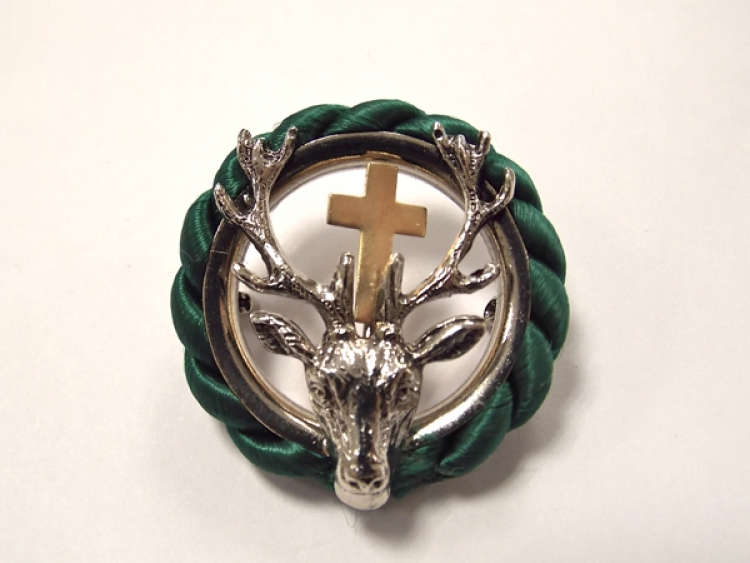 Broche écusson de Saint Hubert sur couronne verte ref 2