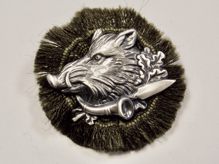 Broche sanglier, corne d'appel et dague sur fond vert
