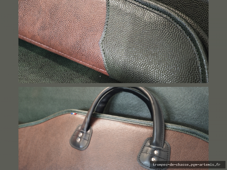 Peut être fabriquée en simili cuir une ou deux couleurs (vert, marron ou noir)